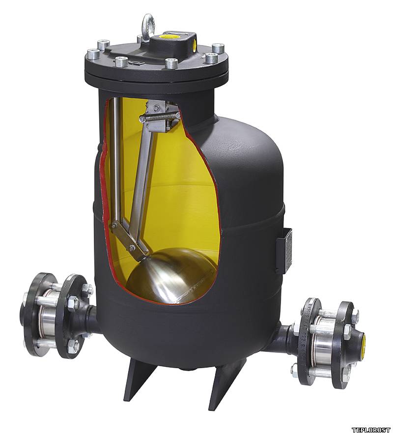 Под действием давления жидкость открывает обратный клапан, установленный на выходе из насоса, и отводится в дренажный трубопровод. Обратный клапан, установленный на входе в насос, препятствует попаданию конденсата в подающий трубопровод. Как только поплавок опустится ниже минимально допустимого уровня, рычажный механизм закрывает клапан подачи управляющей среды и открывает клапан, выпускающий воздух из корпуса насоса, чтобы не препятствовать заполнению жидкостью из подающего трубопровода. Определить реальный расход перекачиваемой жидкости можно с помощью механического счетчика циклов срабатываний (поставляется по запросу), который может быть установлен в крышке насоса.. Зная объем жидкости, помещающийся в насосе за один цикл, и количество срабатываний, можно получить информацию по расходу за интересующие Вас промежутки времени.