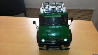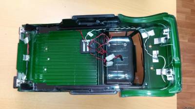 Подключен свет к люстре, передним и задним фарам через блок света Tamiya TLU-01 На моторе установлен радиатор и куллер для охлаждения.