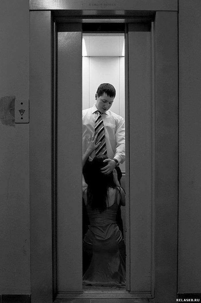 Тёмный подъезд. Мужик входит в тёмный лифт и нажимает нужный этаж.Вслед за ним успевает вбежать девушка.Лифт едет и внезапно застревает между этажами.Девушка нащупывает мужской силуэт: