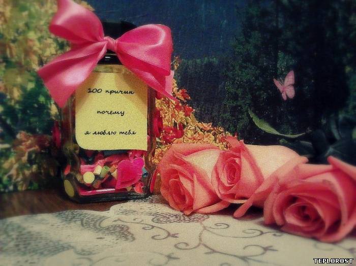 61. Твоя любовь меня бережет 62. Всё стало прекрасно с твоим появлением 63. Ты можешь сделать ярким любой самый хмурый день 64. Когда я беру тебя за руку, мне становится легко 65. Ты делаешь нашу жизнь счастливой 66. Ты меня заводишь 67. Я хочу,чтобы мы всегда были вместе 68. Ты всегда радуешь меня просто тем,что ты есть 69. Мы знаем самые прекрасные стороны любви 70. Ты умеешь находить нужные слова 71. Твое счастье важнее всего для меня 72. С тобой хорошо в любом месте 73. Даже твои маленькие поступки очень важны для меня 74. Хочу не выпускать тебя из объятий 75. Глядя в твои глаза я понимаю: мои мечты сбылись 76. Ты учишь меня любить 77. Люблю слушать твой голос 78. Ты самый нежный 79. Я люблю всё,что ты делаешь 80. С тобой не хочется вылезать из постели 81. Ты мой самый лучший друг 82. Ты всегда в моих мыслях 83. Я схожу с ума от тебя 84. Ты будишь во мне страсть 85. Ты как магнит,меня тянет к тебе 86. Ты мой самый прекрасный сон 87. При тебе можно не бояться выглядеть глупо 88. Для меня наслаждени быть с тобой 89. Ты модешь оторваться от любых дел,чтобы побыть со мной 90. я могу задавать тебе дурацкие вопросы 91. Всё,что мне нужно, знать,что ты рядом 92. Мне помогают твои советы 93. Ты знаешь мои тайны и хранишь их 94. Ты мое солнышко 95. Мы с тобой классно смотримся вместе 96. Все мои знакомые от тебя в восторге 97. Ты умеешь утешить,когда мне грустно 98. Нет ничего слаще твоих поцелуев 99. Наши желания так часто совпадают 100. Хочу,чтобы моя жизнь принадлежала тебе 101. Причины бесконечны, но важнее всего то, что я люблю тебя,потому что не могу не любить!!!