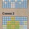 Нитью синего цвета набрать 80 п. и вязать 4 см лиц. гладью, после чего резинкой 1 лиц. скрещ. п. х 1 изн. п. вязать 4 р. нитью белого, по 2 р. нитью желтого, белого и зеленого и 4 р. нитью 'белого цветов. Далее вязать лиц. гладью 1 р. нитью синего цвета, выполнить белую часть узора 1 и вязать нитью синего цвета до окончания. На высоте 20 см продеть через п. нить, стянуть ее и выполнить шов шапочки -первые 4 см на резинке сшить с лиц. стороны, до этой высоты загнуть край шапочки в трубочку. На макушку шапочки пришить желтый, зеленый и белый помпоны, каждый диаметром 4 см. Над связанным узором нитью желтого цвета вышить короткими стежками через 2 п. верхнюю часть узора 1.