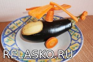 Из моркови отрезаем круг, а из круга делаем винт, вырезая из него 4 треугольника. Наш вертолёт готов.