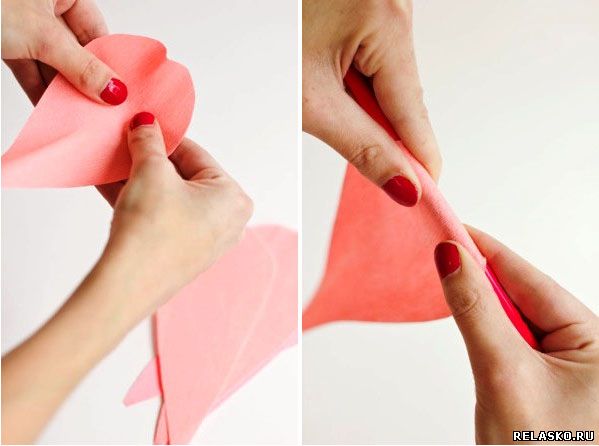 Малые лепестки формируем следующим образом: слегка сгибаем в середине по всей длине, затем берем лепесток в обе руки и тянем в стороны, и край закручиваем с помощью карандаша.