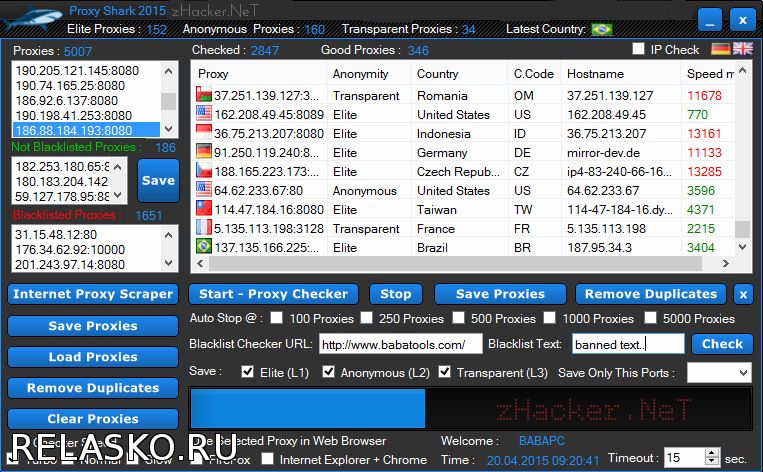 Proxy Shark - программа для поиска свежих прокси по странам .