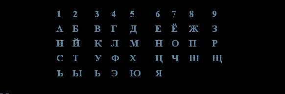 В таблице приведены соответствия букв и чисел.