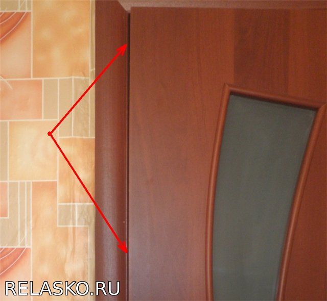 Для установления места деформации возьмите полоску бумаги и проведите её по просвету между прикрытой дверью и коробкой (фото 1). Это нужно для того чтобы не расшивать дверь по всей высоте.