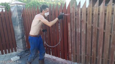 Состав сможет хорошо лечь в отсутствие дождя и ветра. Однако при этом стоит учитывать, что прямые солнечные лучи способны уменьшать скорость высыхания краски, и из-за этого потеряет в дальнейшем краска свои защитные свойства. И напоследок необходимо подготовить инструмент для нанесения краски. Для точечной покраски деревянного забора подходит кисточка. Для увеличения скорости работы принято использовать валик, для создания идеального ровного слоя лучше приобрести распылитель.