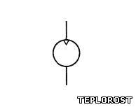 Условное графическое обозначение Пневмомотор нерегулируемый с нереверсивным потоком на чертежах и схемах. Общепринятая стандартизованная маркировка по ГОСТ: