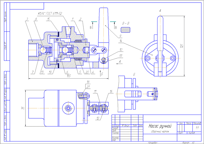 Чертеж ручного насоса. Ручной насос данной конструкции является поршневым двойного действия.