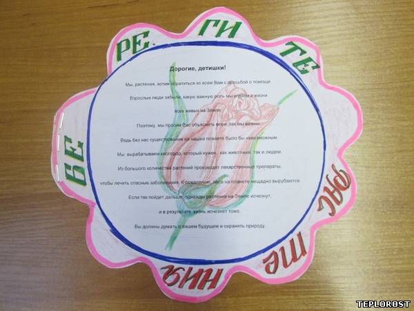 Книжка-малышка Берегите растения! - сделана своими руками школьника