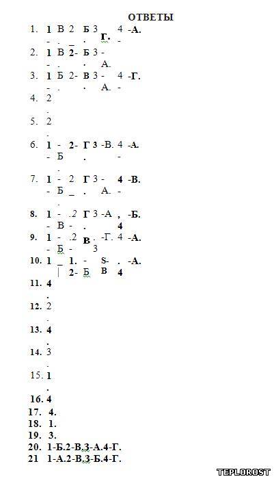 20. Установите соответствие: Страны-лидеры Культура 1. Россия, Польша, Китай. А. Рис 2. Бразилия, Индия, Куба. Б. Картофель 3. Китай, Индия, Индонезия. В. Сахарный тростник 4. Китай, США, Индия. Г. Хлопчатник