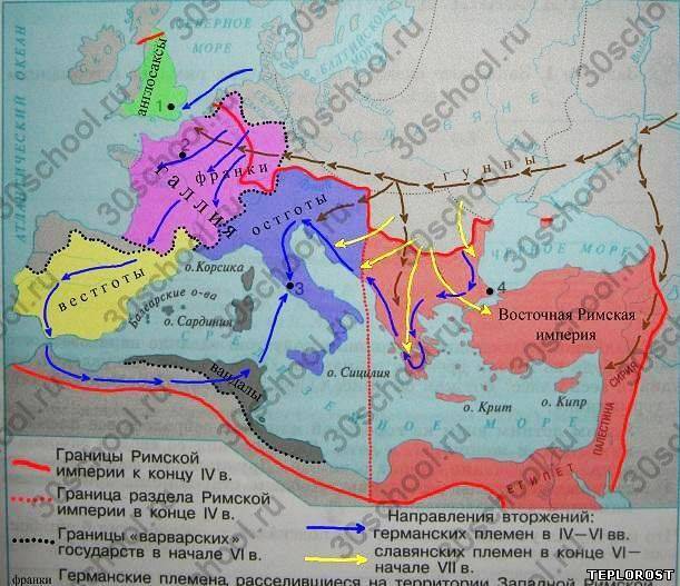 5. Подпишите названия германских племен, расселившихся на территории Западной Римской империи.