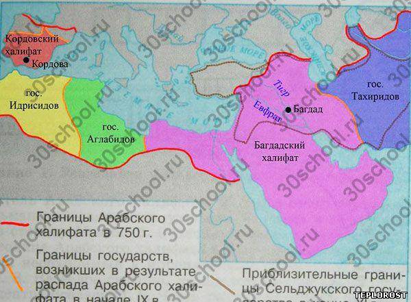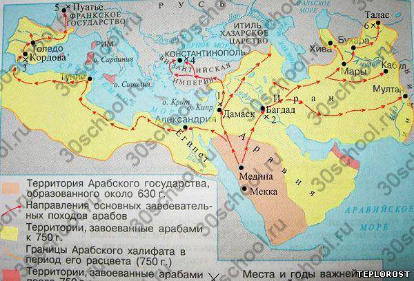 Заполните контурную карту «Завоевания арабов в VII—VIII веках».