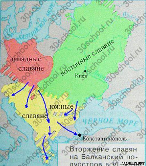 3. Обозначьте стрелками вторжения славян на Балканский полуостров.