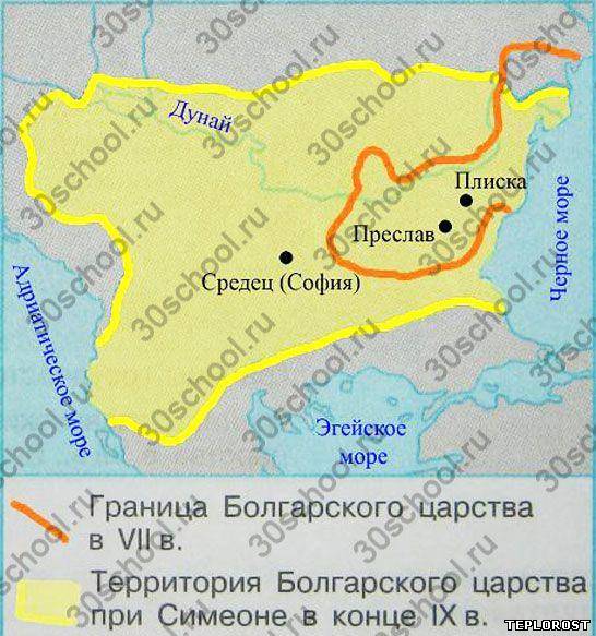 Заполните контурную карту «Болгарское царство в VII—IX веках».