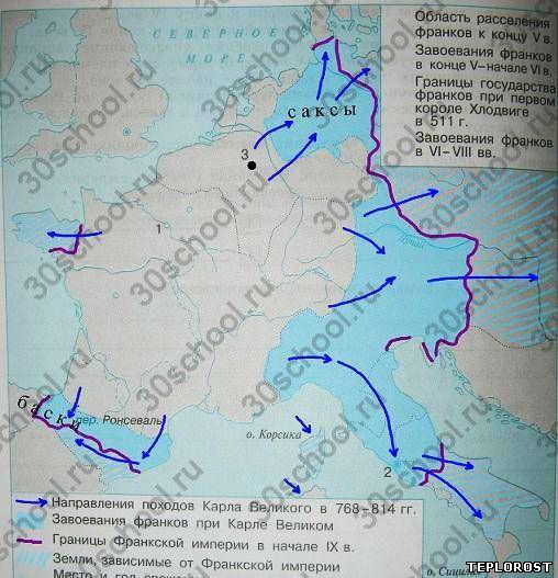 Начните заполнять контурную карту «Образование Франкского королевства. Завоевания Карла Великого».