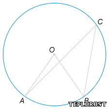 Угол ABC является вписанным в окружность, следовательно, равен половине градусной меры дуги, на которую опирается, или половине градусной меры соответствующего центрального угла: