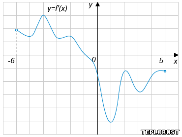 На рисунке изображен график производной функции f(x), определенной на интервале (−6;5).