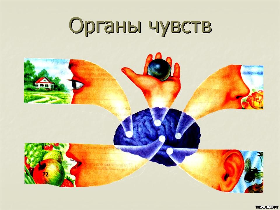 Единственная часть тела, на которой сосредоточены органы чувств – зрения, слуха и обоняния. - Найдите самостоятельно наружные органы перечисленных чувств. К органам осязания относится вся поверхность кожи, в том числе и головы. Черепная коробка является вместилищем головного мозга – главного «распорядительного» органа.