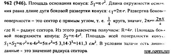 На рисунке 64, а изображен конус. Основание конуса — круг, а развертка боковой поверхности — сектор (см. рис. 64, б). Вычислите площадь поверхности конуса, если радиус его основания 3 см, а развертка боковой поверхности — сектор с прямым углом, радиус этого сектора 12 см. Есть ли в условии задачи лишние данные?
