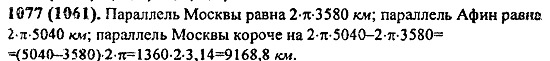 Радиусы географических параллелей земной поверхности, на которых расположены города Афины и Москва, соответственно равны 5040 км и 3580 км (рис. 87). На сколько параллель Москвы короче параллели Афин?