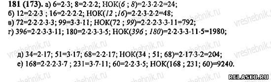 а) 6 и 8; в) 72 и 99; д) 34, 51 и 68; б) 12 и 16; г) 396 и 180; е) 168, 231 и 60.