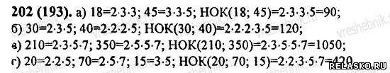 а) 18 и 45; б) 30 и 40; в) 210 и 350; г) 20, 70 и 15.