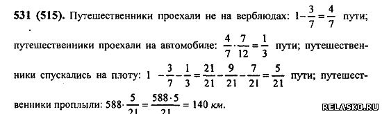 Путешественники по Африке 3/7 всего намеченного пути проехали на верблюдах, 7/12 оставшегося пути - на автомобиле, а затем на плоту спускались по реке. Какую часть всего пути заняло путешествие по реке? Сколько километров путешественники проплыли по реке, если весь их путь составил 588 км?