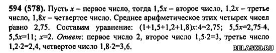 Среднее арифметическое четырех чисел 2,75. Найдите эти числа, если второе больше первого в 1,5 раза, третье больше первого в 1,2 раза и, наконец, четвертое больше первого в 1,8 раза.
