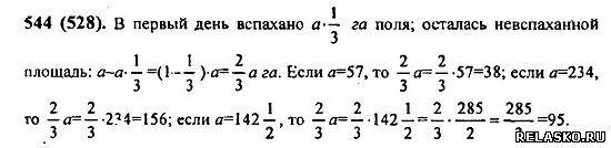 Площадь поля а га. В первый день вспахали 1/3 поля. Какая площадь осталась невспаханной? Найдите значение получившегося выражения при a = 57; 234; 142 1/2