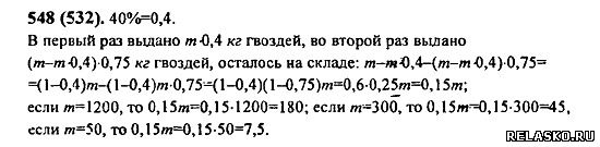 На складе было m кг гвоздей. Кладовщик в первый раз выдал 40% имевшихся гвоздей, во второй раз — 75% остатка. Сколько килограммов гвоздей осталось на складе? Найдите значение получившегося выражения при m = 1200; 300; 50.