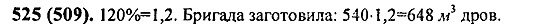 Бригада лесорубов получила задание заготовить 540 м3 дров. Это задание было выполнено на 120%. Сколько кубометров дров заготовила бригада лесорубов?