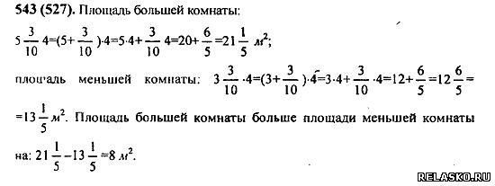 Квартира состоит из двух комнат. Длина большей комнаты 5 3/10 м, а ширина 4 м. Длина меньшей комнаты 4 м, а ширина 3 3/10 м. На сколько площадь одной комнаты меньше площади другой?
