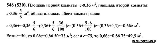 Семья получила двухкомнатную квартиру общей площадью с м2. Одна комната составляла 0,36 общей площади, а вторая составляла 5/6 площади первой комнаты. Чему равна площадь двух комнат вместе? Найдите значение получившегося выражения при с = 50; 75.