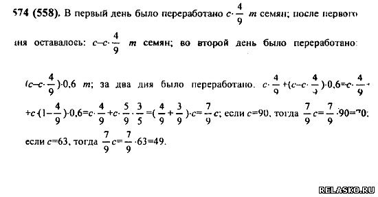 В первый день маслобойня переработала 4/9 поступившего количества семян подсолнечника, во второй день 0,6 остатка. Сколько тонн семян подсолнечника переработала маслобойня за эти два дня, если было привезено с т семян? Найдите значение получившегося выражения при с = 90; 63.