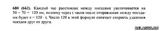 С одной станции в противоположных направлениях вышли два поезда в одно и то же время. Скорость одного поезда 50 км/ч, а скорость другого поезда 70 км/ч. Какое расстояние будет между ними через t часов после отправления в путь? Запишите ответ в виде формулы и упростите ее. Что означает число 120 в получившейся формуле?