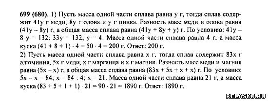 1) Бронза содержит (по массе) 41 часть меди, 8 частей олова и 1 часть цинка. Какова масса куска бронзы, если в ней олова меньше, чем меди, на 132 г? 2) Дюралюминий — сплав, состоящий из 83 частей алюминия, 5 частей меди, 1 части марганца и 1 части магния (по массе). Какова масса куска дюралюминия, если в нем меди больше, чем магния, на 84 г?