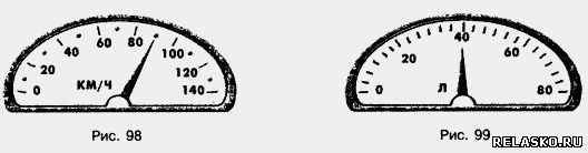 На рисунке 99 изображена шкала прибора, показывающего, сколько литров бензина осталось в баке автомобиля. Сколько литров бензина сейчас в баке? На сполько делений и в какую сторону передвинеться стрелка прибора, если а) в бензобак нальют еще 20 литров бензина. б) при движении будет израсходавано 30 л бензина?