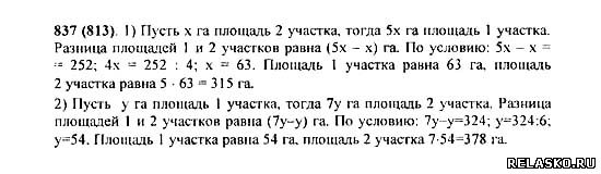 1) Найдите площадь каждого участка, если площадь первого участка в 5 раз больше площади второго, а площадь второго на 252 га меньше площади первого. 2) Найдите площадь каждого участка, если площадь второго участка на 324 га больше площади первого участка, а площадь первого участка в 7 раз меньше площади второго.