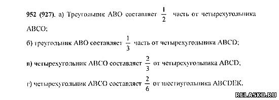 а) треугольник АВО от четырехугольника АВСО составляет половину или 1/2 "одну вторую". б) треугольник АВО от четырехугольника ABCD составляет 1/3 "одну третью". в) четырехугольник АВСО от четырехугольника ABCD составляет 2/3 "две трети". г) четырехугольник АВСО от шестиугольника ABCDEK составляет 2/6 или 1/3 "одну третью".