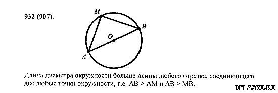 Постройте круг радиусом 5 см. Проведите в нем диаметр АВ. Отметьте на окружности точку М и соедините ее с точками А и В. Измерьте: диаметр АВ, отрезок AM, отрезок MB. Какой из этих отрезков самый длинный?