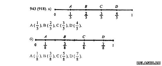 Отметьте на координатном луче точки, координаты которых равны: а)1/5; 2/5; 3/5; 4/5; б)1/8; 3/8; 5/8; 7/8;