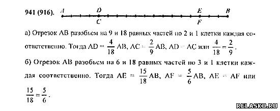 Начертите в тетради отрезок длиной в 18 клеток. С помощью этого отрезка объясните, почему: а) 2/9=4/18 б)5/6=15/18