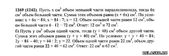 Объем прямоугольного параллелепипеда 84 см3. Этот параллелепипед разделили на две части. Найдите объем каждой части, если: а) объем одной части в 6 раз больше объема другой; б) объем одной части на 40 см3 больше объема другой.
