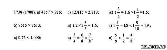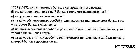 а) четырехзначное и пятизначное натуральные числа; б) два шестизначных числа, первое из которых начинается цифрой 7, а второе — цифрой 5; в) натуральное число и 0; г) обыкновенные дроби с одинаковыми знаменателями; д) десятичные дроби с разными целыми частями; е) десятичные дроби с одинаковыми целыми частями?
