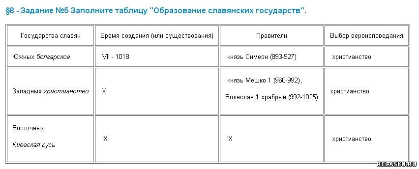 §8 - Задание №4 Заполните контурную карту "Образование славянских государств в IX-XI веках".