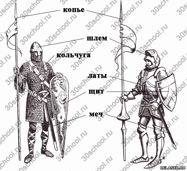 Подпишите, из чего состояло боевое облачение рыцаря. В чём различия между снаряжением XI и XV веков?