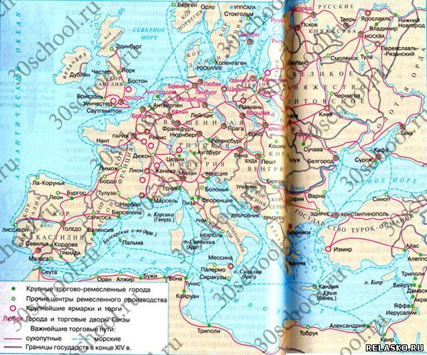 §14 - Задание №4 Заполните контурную карту "Развитие ремесла и торговли в Европе в XIV веке".