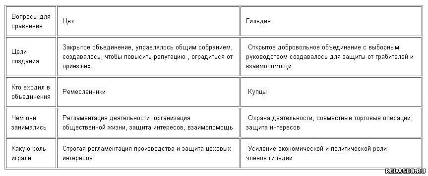 Примечание! вторая колонка "гильдия" – задание к 14 параграфу