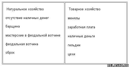 Внимательно прочитайте перечень слов и выражений. Найдите два ключевых понятия: они отражают изменение характера хозяйства в Средние века.. Впишите их в рамку каждой из колонок. Оставшиеся слова раскрывают смысл или первого, или второго из них. Распределите слова в две группы. Впишите их в соответствующую колону.